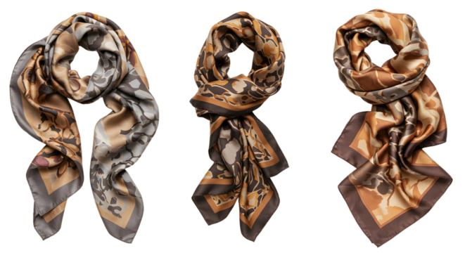 Stylishly Folded Scarves Displayed on White Background in a Fashionable Arrangement
