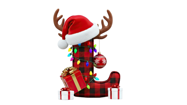 Christmas Letter J with Santa Hat, Reindeer Antlers, Gifts and Lights