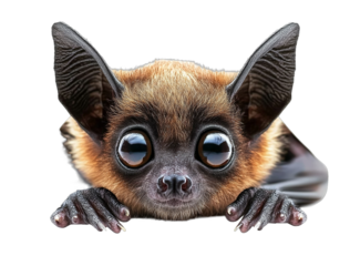 A cute bat with large eyes looking at the camera isolated on a white background.