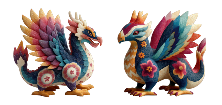 Pair of stylized golden-brown bird feathers against a solid dark field
