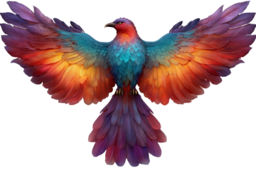 Black bird silhouette soaring over red-orange sphere, transparent art