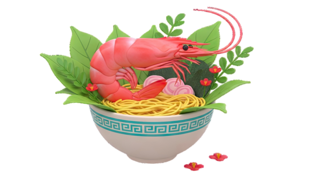 3D Rendered Ramen Bowl with Shrimp and Noodles