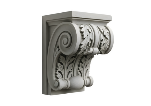 Decorative corbel isolated on transparent background, showcasing intricate leaf carvings and scroll details, ideal for adding classical flair to designs