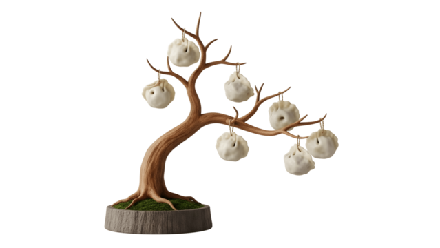 a whimsical illustration depicts a stylized tree with several pod like objects hanging from its branches on transparent background high quality professional detailed modern elegant stylish