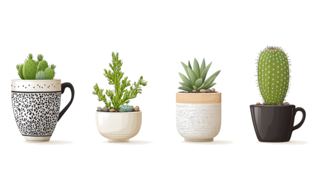 PNG of A stylish wooden shelf displaying a cactus and a lush fern in earthy pots, enhancing any modern decor.