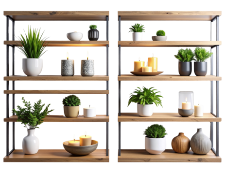 Aesthetic Shelf Styling with Plants and Candles Quad Pack, isolated on transparent background
