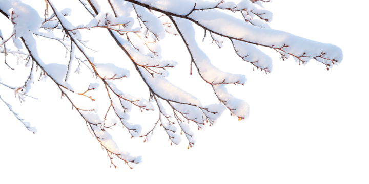 Snow covered tree branches with ice crystals on white background isolated on a transparent background