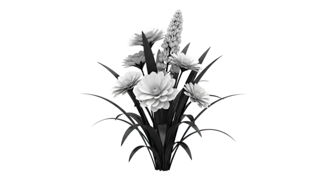 Monochromatic floral arrangement with daisies and a hyacinth spike
