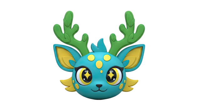Cute Teal and Green Antlered Creature with Large Starry Eyes