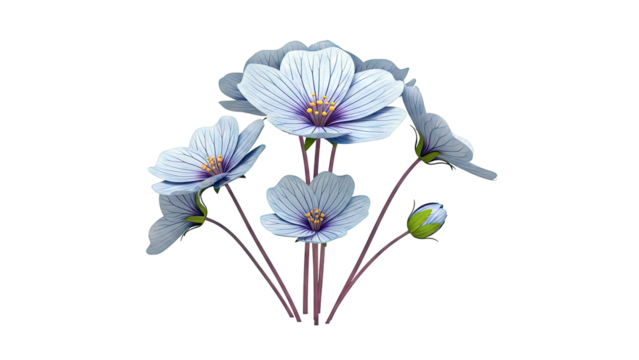 Elegant stylized floral bloom illustration on transparent background