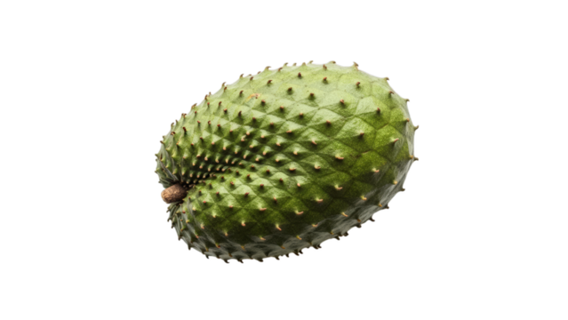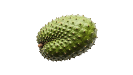 Fresh soursop fruit isolated on a transparent background in flat lay style, ideal for product photography, food concepts, and healthy nutrition themes.