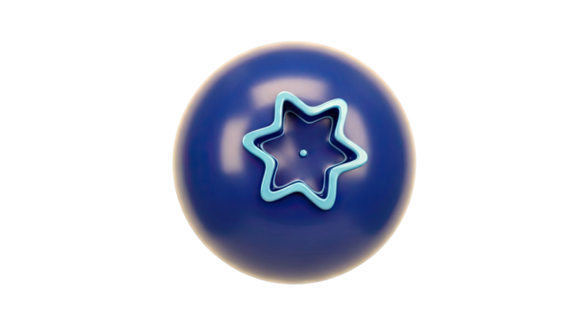 Close-up of a single, stylized blueberry with a star-shaped crown