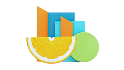 Abstract Geometric Composition with Orange Slice and Colorful Shapes