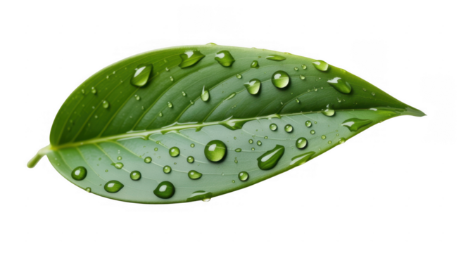 Stylized botanical illustration shows a single green leaf against a solid black background.