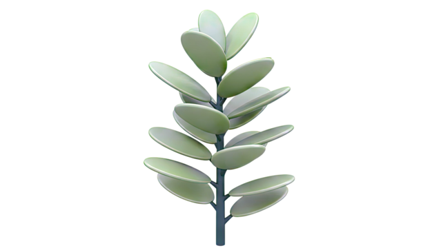 Green Plant Stem with Oval Leaves