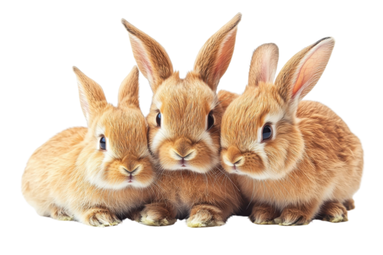 A family of rabbits, isolate on white background, standing together with playful and loving expressions. PNG