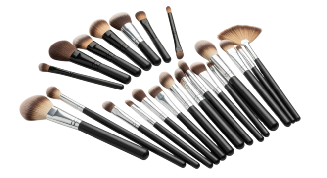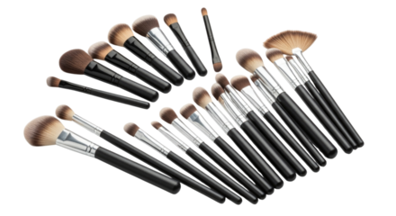 Large Set of Various Professional Makeup Brushes Scattered Isolated Cutout Transparent PNG