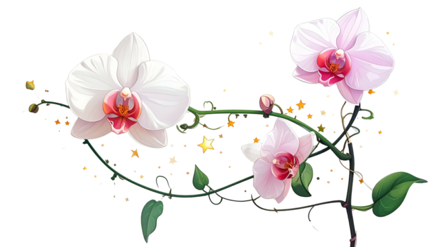 Transparent floral vine with orange blooms for botanical design