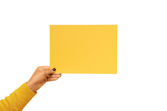 piece of paper in the female hand isolated on transparent background