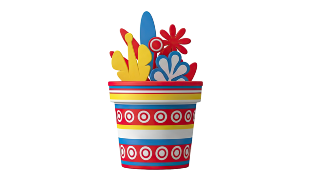 Abstract Layered Tree with Red, White, Teal, and Yellow Petals