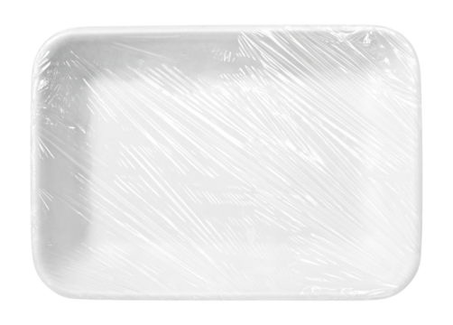 Empty white styrofoam food tray PNG isolated on transparent background, disposable container for packaging and storage