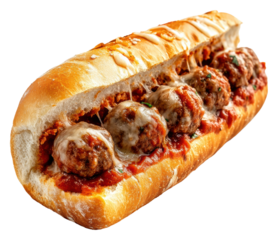 PNG Delicious meatball sub with marinara and cheese