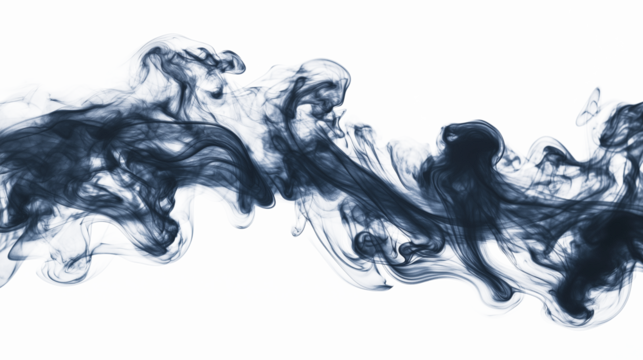 Abstract indigo dark blue smoke wavy lines curling isolated on transparent background