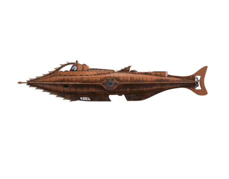 Fantasy Submarine. 3D illustration. Nautilus submarine detailed.
