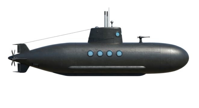 Hyperrealistic Nuclear Submarine Isolated on White Background Ideal for Military and Technological Illustrations and Publications