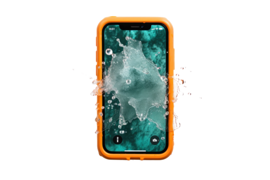 Citrus Symphony: Vibrant Orange Case Awash in Water Splash.