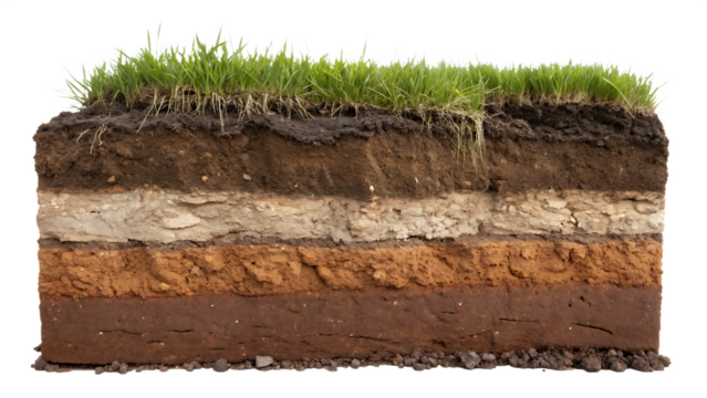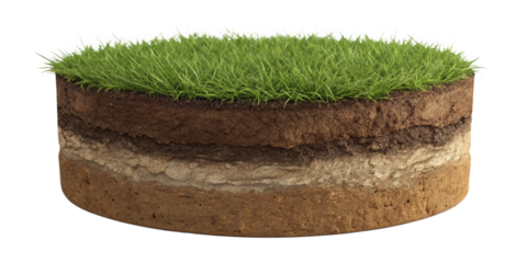 Soil cross section layers isolated cut out on PNG. AI GENERATED.