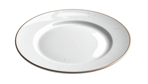 Elegant white dinner plate with subtle rim detail perfect for fine dining. Isolated On Transparent Background