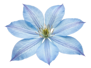 stunning clematis flower showcases delicate blue petals with subtle purple veins radiating from vibrant center, embodying natural beauty