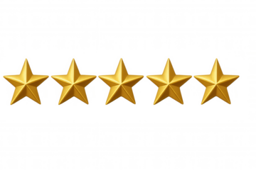 Five golden stars showing excellent product quality, customer service, and top rating on transparent background