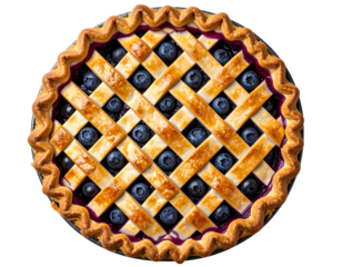 Homemade Blueberry Pie with Lattice Crust, Top View, Transparent Background