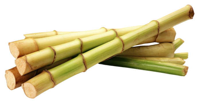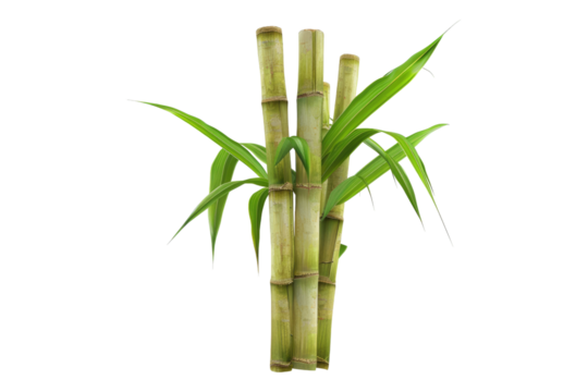 Isolated sugarcane stalks with green leaves against a white background, ready to plant transparent background