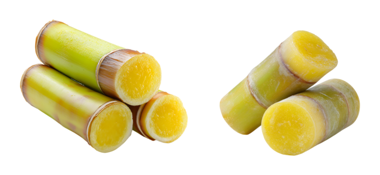 Sugarcane juice, with a sweet and soft texture, cut into pieces of sugarcane isolated on a transparent background
