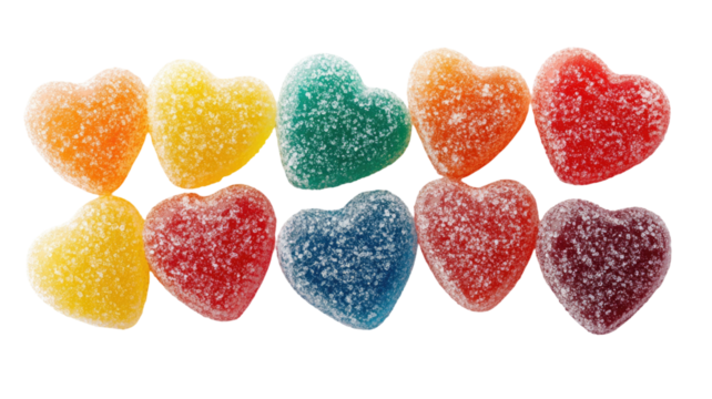 Gummy heart shaped sugar coated jelly isolated on a transparent background