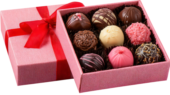 Delicious assortment of gourmet chocolate truffles in pink box tied with red ribbon yummy treat for special occasions valentine gifts for chocolate lovers