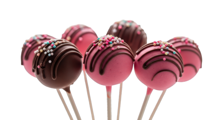 Assorted cake pops with chocolate and sprinkles isolated on transparent background