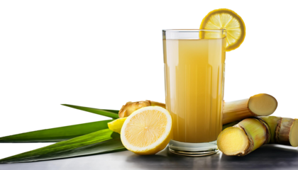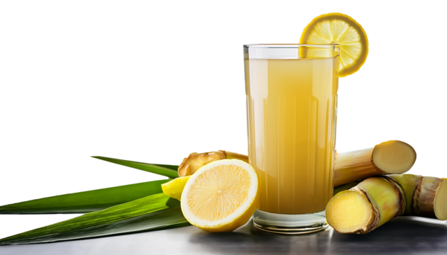 Sugarcane Juice with Lemon and Ginger, Transparent Background