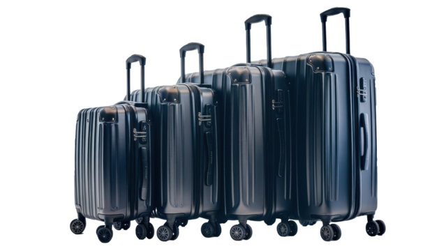 Businesswoman in formal attire with tablet and suitcase transparent background