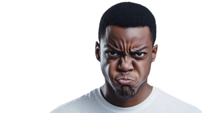 Young man making a sulky face with transparent background
