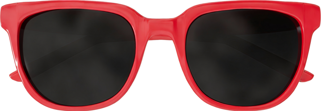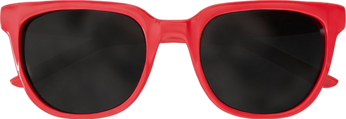 A pair of red-framed sunglasses with black lenses. Designed for fashion and UV protection, ideal for outdoor activities and summer wear.