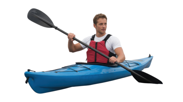 Man Kayaking, Paddling on Water
