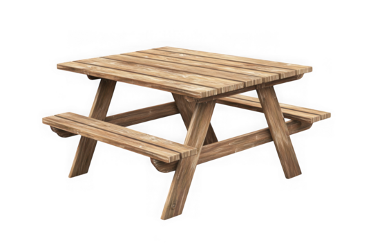 Detailed wooden picnic table illustration for outdoor seating and dining, perfect for summer gatherings and backyard decor isolated on transparent background
