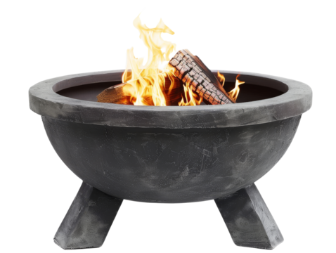 A gray fire pit with a roaring fire inside.  Perfect for outdoor gatherings.