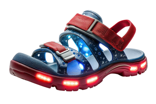 Colorful kids' sandals with LED lights designed for summer outdoor fun and beach activities