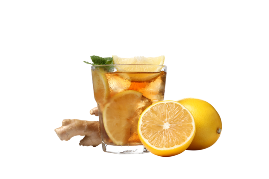 Isolated, transparent drink cocktail, mint, water splash, bubbles, ice, green.