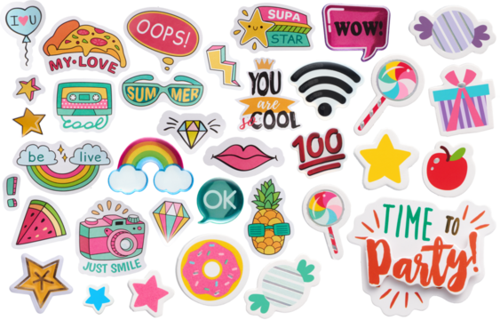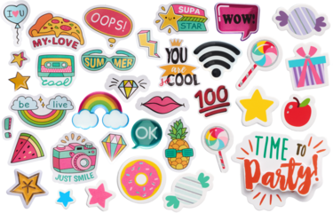Trendy Party Stickers Group - Ready to use PNG Cutout Premium Isolated Image